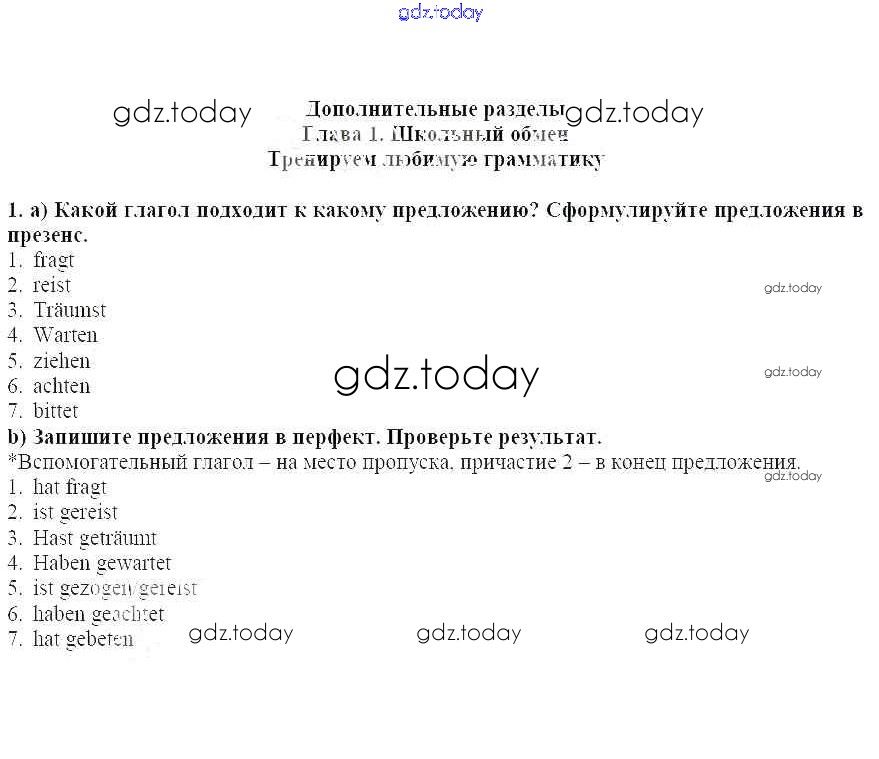Ответы к Тренируем любимую грамматику Решение к главе 1. Школьный обмен 1 Учебнику по Немецкому языку для 8 класса Радченко, Конго Углубленный уровень Просвещение Wunderkinder Plus 2019