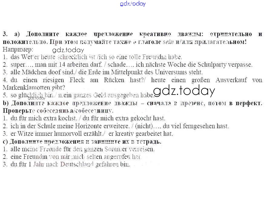 На страницах сайта gdz.today вы найдете учебный и вспомогательный материал, направленный на улучшения знаний школьной программы. ГДЗ - онлайн мир знаний Тренируем любимую грамматику Решение к главе 1. Школьный обмен 3 Учебнику по Немецкому языку для 8 класса Радченко, Конго Углубленный уровень Просвещение Wunderkinder Plus 2019