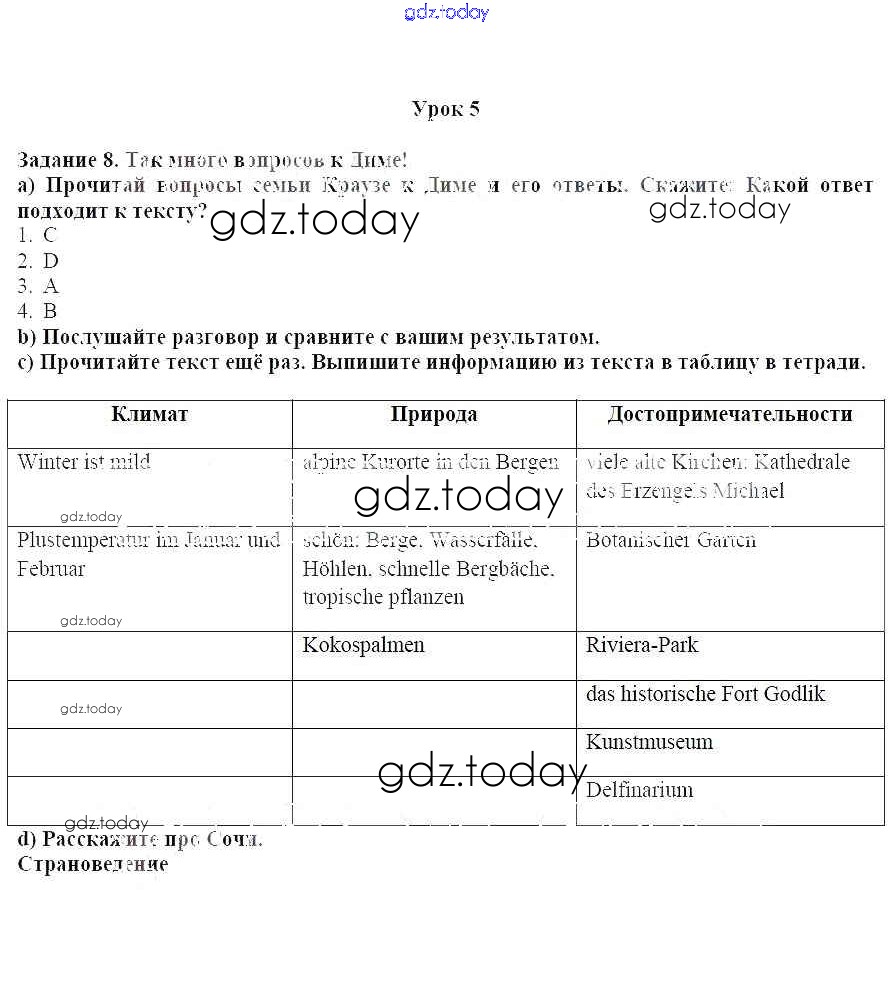 На страницах сайта gdz.today вы найдете учебный и вспомогательный материал, направленный на улучшения знаний школьной программы. ГДЗ - онлайн мир знаний Решение к главе 1. Школьный обмен 8 Учебнику по Немецкому языку для 8 класса Радченко, Конго Углубленный уровень Просвещение Wunderkinder Plus 2019