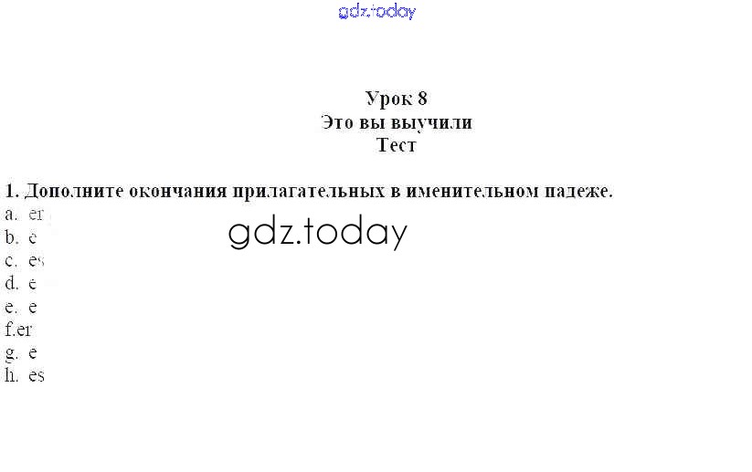 На страницах сайта gdz.today вы найдете учебный и вспомогательный материал, направленный на улучшения знаний школьной программы. ГДЗ - онлайн мир знаний Это я выучил Решение к главе 2. Вкусная еда. Блошиный рынок 1 Учебнику по Немецкому языку для 8 класса Радченко, Конго Углубленный уровень Просвещение Wunderkinder Plus 2019