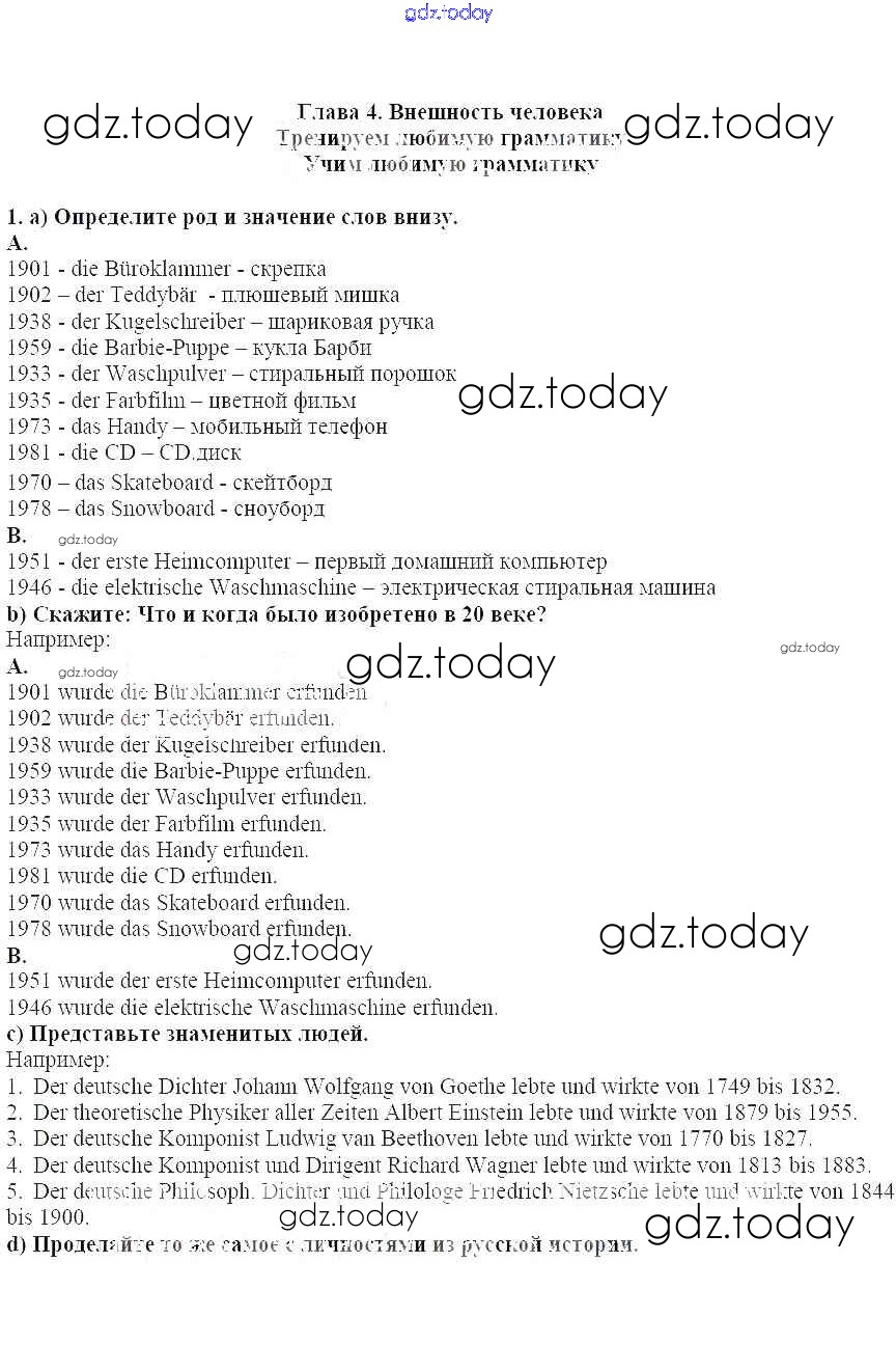 На страницах сайта gdz.today вы найдете учебный и вспомогательный материал, направленный на улучшения знаний школьной программы. ГДЗ - онлайн мир знаний Тренируем любимую грамматику Решение к главе 4. Внешность человека 1 Учебнику по Немецкому языку для 8 класса Радченко, Конго Углубленный уровень Просвещение Wunderkinder Plus 2019