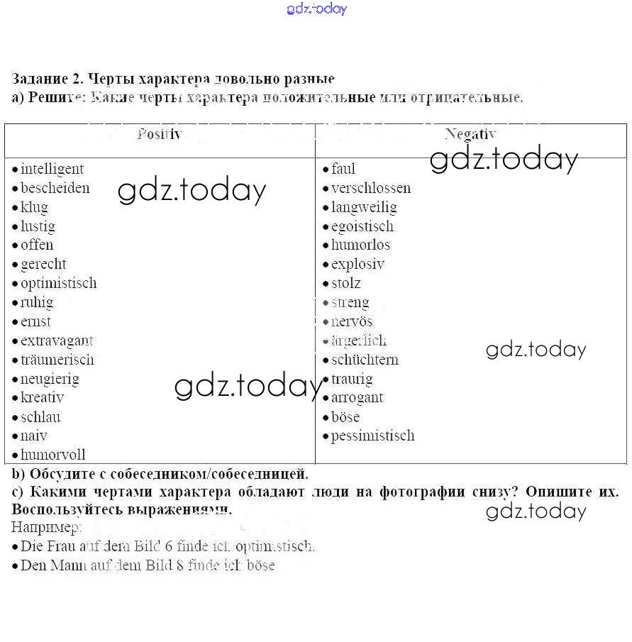На страницах сайта gdz.today вы найдете учебный и вспомогательный материал, направленный на улучшения знаний школьной программы. ГДЗ - онлайн мир знаний Решение к главе 5. Такие разные люди! 2 Учебнику по Немецкому языку для 8 класса Радченко, Конго Углубленный уровень Просвещение Wunderkinder Plus 2019
