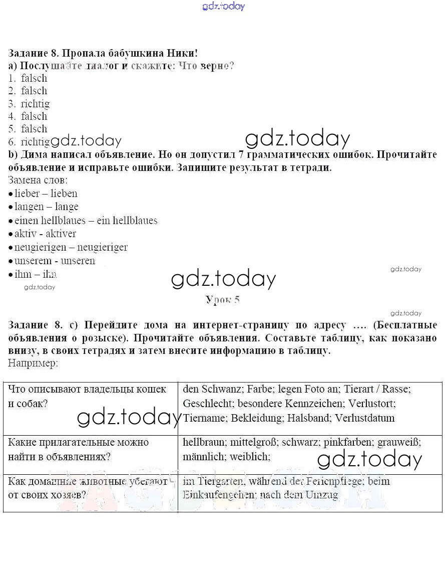 На страницах сайта gdz.today вы найдете учебный и вспомогательный материал, направленный на улучшения знаний школьной программы. ГДЗ - онлайн мир знаний Решение к главе 5. Такие разные люди! 8 Учебнику по Немецкому языку для 8 класса Радченко, Конго Углубленный уровень Просвещение Wunderkinder Plus 2019