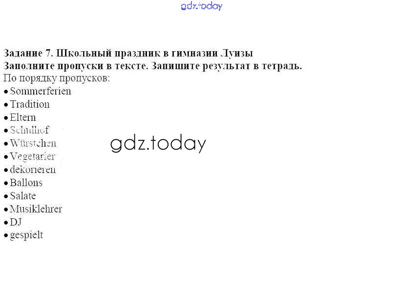 На страницах сайта gdz.today вы найдете учебный и вспомогательный материал, направленный на улучшения знаний школьной программы. ГДЗ - онлайн мир знаний Решение к главе 7. Школьная вечеринка 7 Учебнику по Немецкому языку для 8 класса Радченко, Конго Углубленный уровень Просвещение Wunderkinder Plus 2019