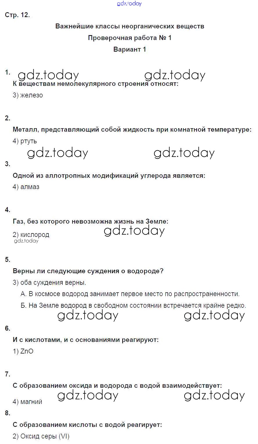 На страницах сайта gdz.today вы найдете учебный и вспомогательный материал, направленный на улучшения знаний школьной программы. ГДЗ - онлайн мир знаний Страницы (решение) 12 Тетради-экзаменатору по Химии для 8 класса Бобылева, Бирюлина Просвещение Сферы 2016