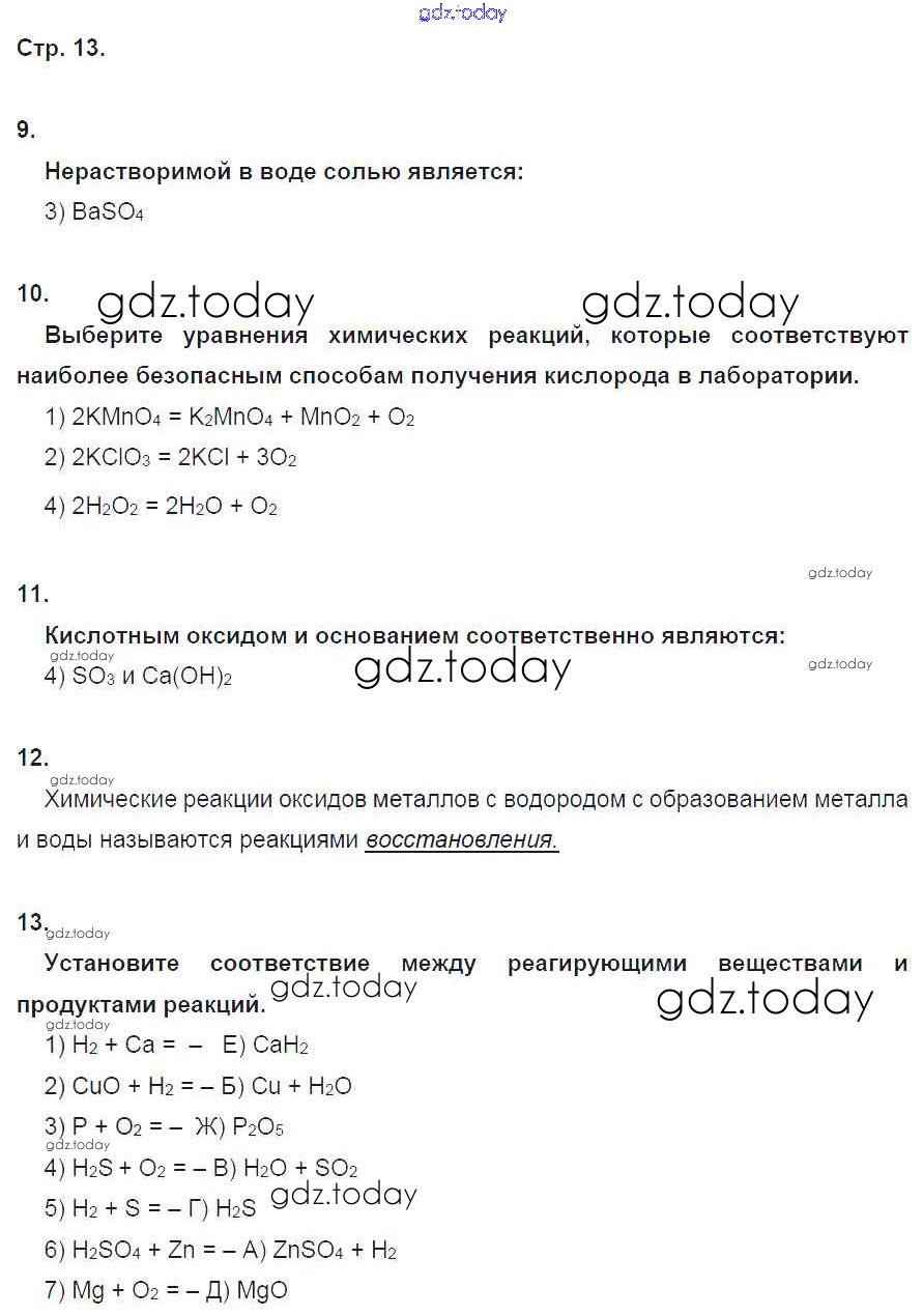 На страницах сайта gdz.today вы найдете учебный и вспомогательный материал, направленный на улучшения знаний школьной программы. ГДЗ - онлайн мир знаний Страницы (решение) 13 Тетради-экзаменатору по Химии для 8 класса Бобылева, Бирюлина Просвещение Сферы 2016