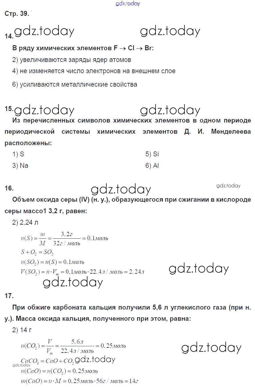 Ответы к Страницы (решение) 39 Тетради-экзаменатору по Химии для 8 класса Бобылева, Бирюлина Просвещение Сферы 2016