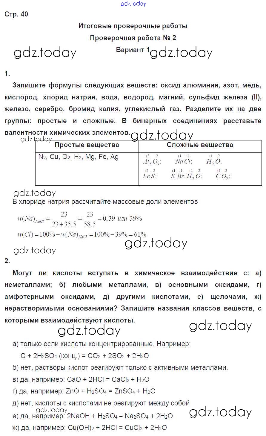 На страницах сайта gdz.today вы найдете учебный и вспомогательный материал, направленный на улучшения знаний школьной программы. ГДЗ - онлайн мир знаний Страницы (решение) 40 Тетради-экзаменатору по Химии для 8 класса Бобылева, Бирюлина Просвещение Сферы 2016