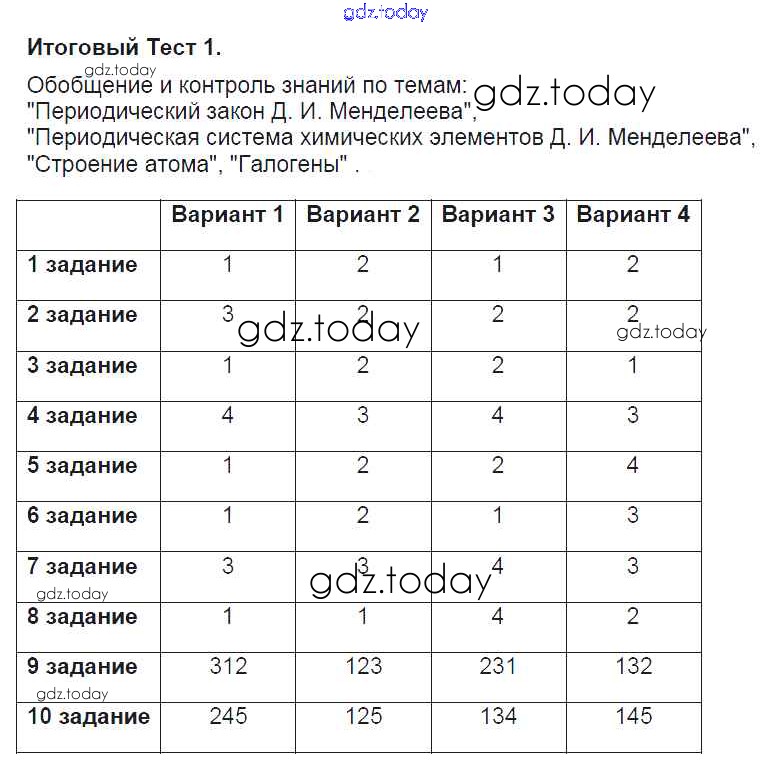 На страницах сайта gdz.today вы найдете учебный и вспомогательный материал, направленный на улучшения знаний школьной программы. ГДЗ - онлайн мир знаний Итоговый тест Решение к тестам 1 Тестам по Химии для 8 класса Боровских Экзамен УМК 2013