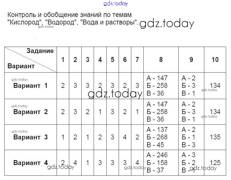На страницах сайта gdz.today вы найдете учебный и вспомогательный материал, направленный на улучшения знаний школьной программы. ГДЗ - онлайн мир знаний Решение к контролю и обобщению 1 Тестам по Химии для 8 класса Боровских Экзамен УМК 2013