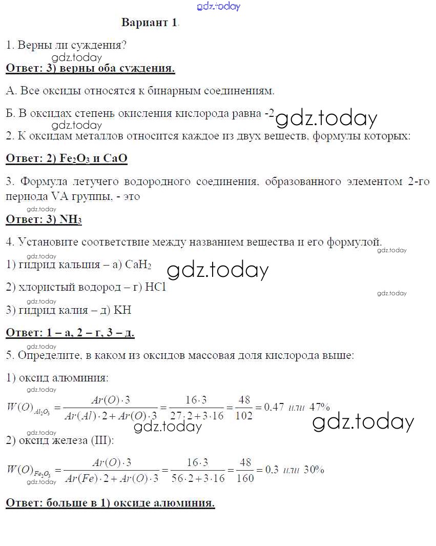 Ответы к ПР-11. Варианты Решение к проверочным работам 1 Контрольным работам по Химии для 8 класса Габриелян, Краснова Дрофа УМК 2017