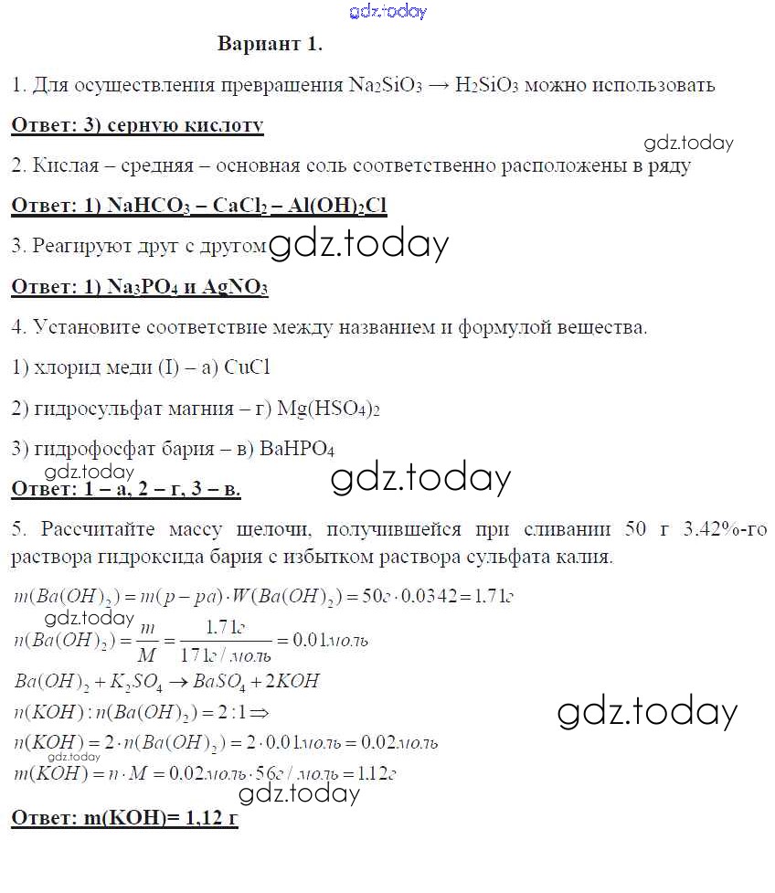 Ответы к ПР-28. Варианты Решение к проверочным работам 1 Контрольным работам по Химии для 8 класса Габриелян, Краснова Дрофа УМК 2017