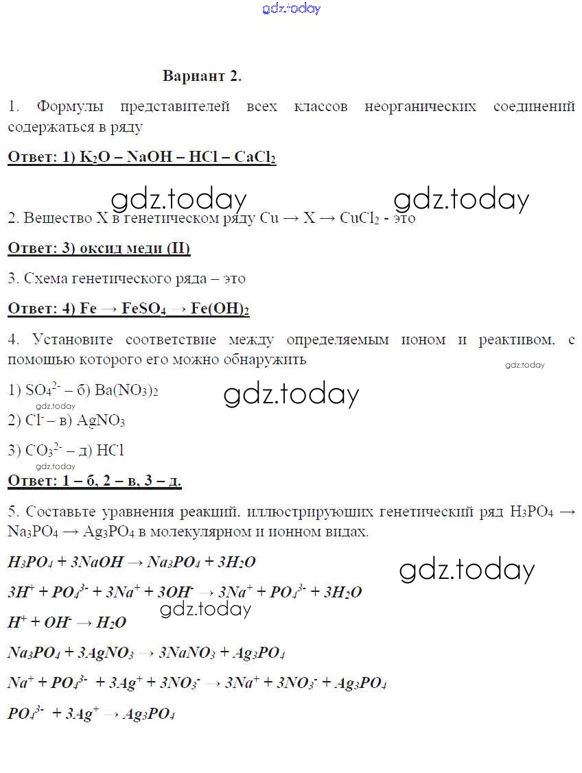 Ответы к ПР-29. Варианты Решение к проверочным работам 2 Контрольным работам по Химии для 8 класса Габриелян, Краснова Дрофа УМК 2017