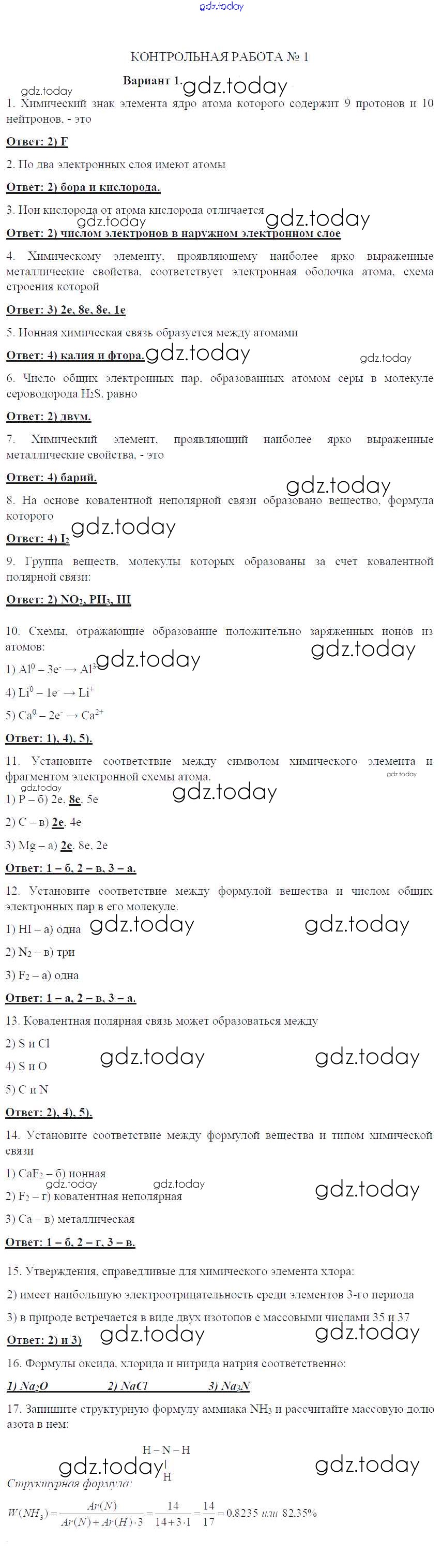 Ответы к КР-1. Варианты Решение к контрольным работам 1 Контрольным работам по Химии для 8 класса Габриелян, Краснова Дрофа УМК 2017