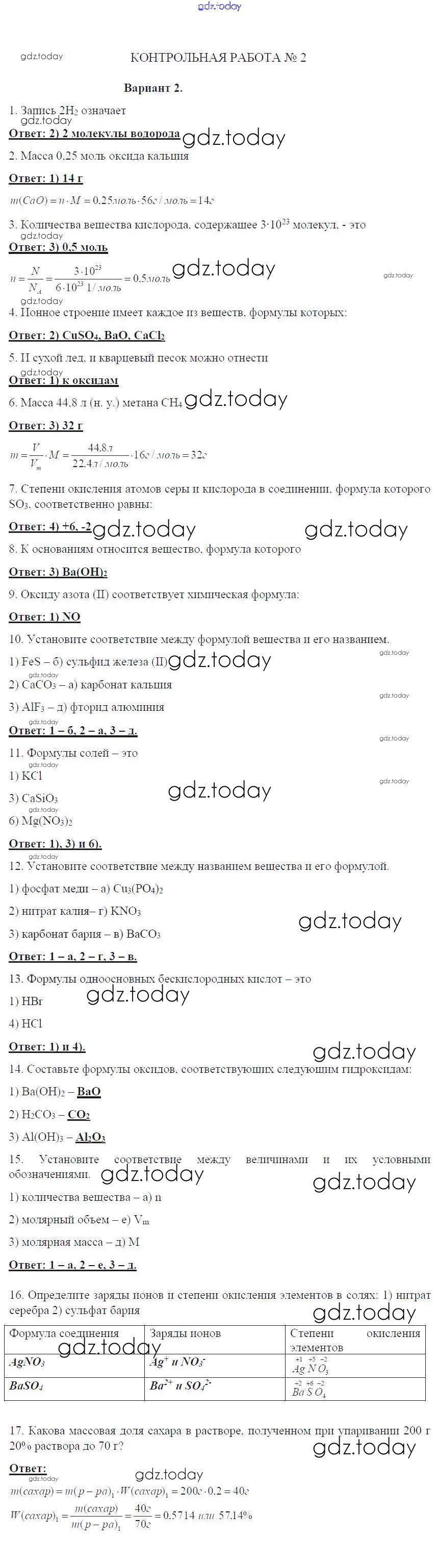 Ответы к КР-2. Варианты Решение к контрольным работам 2 Контрольным работам по Химии для 8 класса Габриелян, Краснова Дрофа УМК 2017