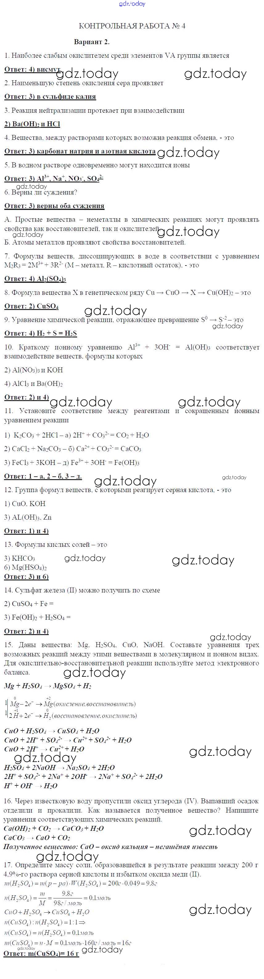 На страницах сайта gdz.today вы найдете учебный и вспомогательный материал, направленный на улучшения знаний школьной программы. ГДЗ - онлайн мир знаний КР-4. Варианты Решение к контрольным работам 2 Контрольным работам по Химии для 8 класса Габриелян, Краснова Дрофа УМК 2017
