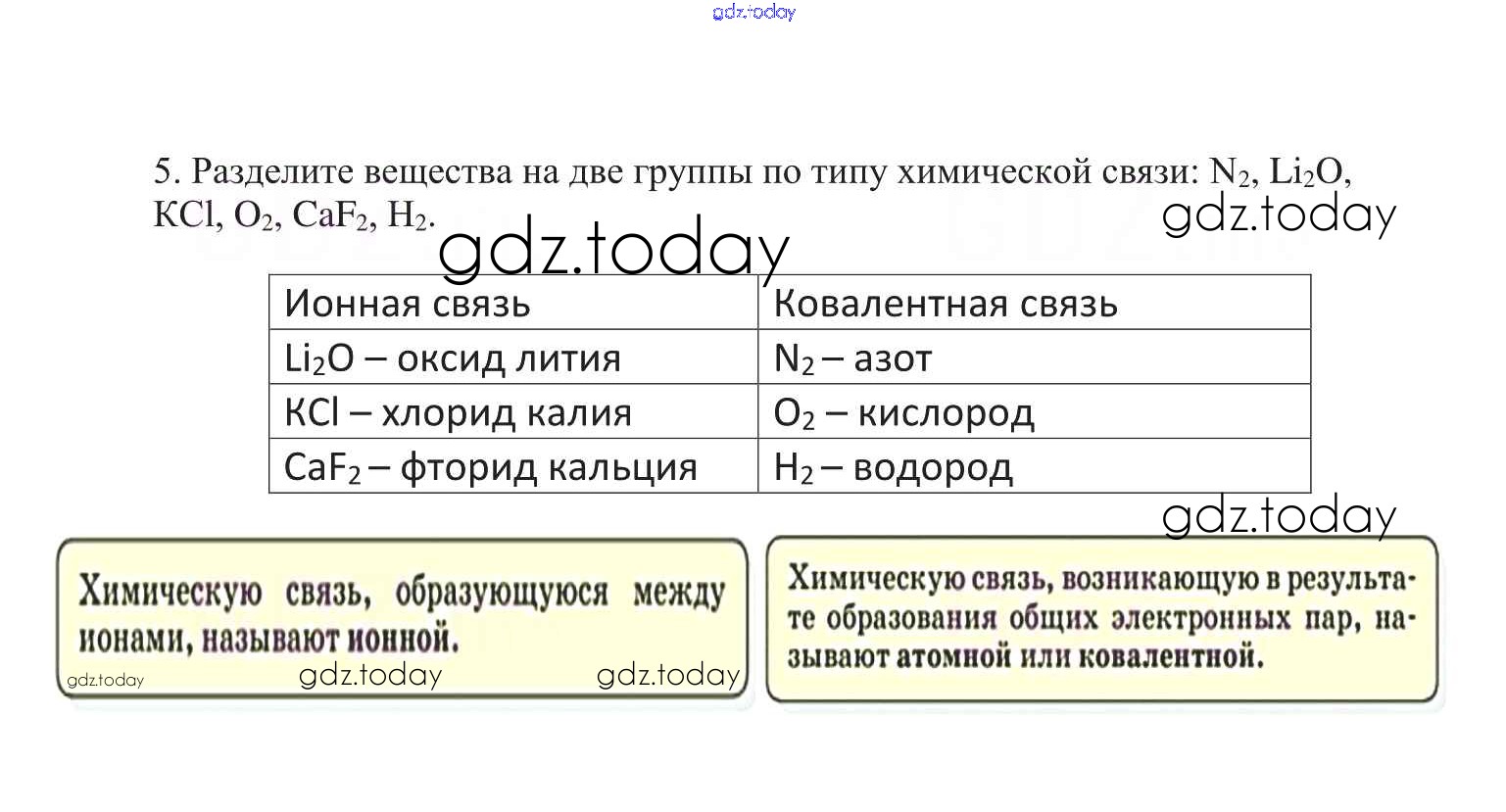 На страницах сайта gdz.today вы найдете учебный и вспомогательный материал, направленный на улучшения знаний школьной программы. ГДЗ - онлайн мир знаний Решение к §11 5 Учебнику по Химии для 8 класса Габриелян Дрофа Вертикаль 2019