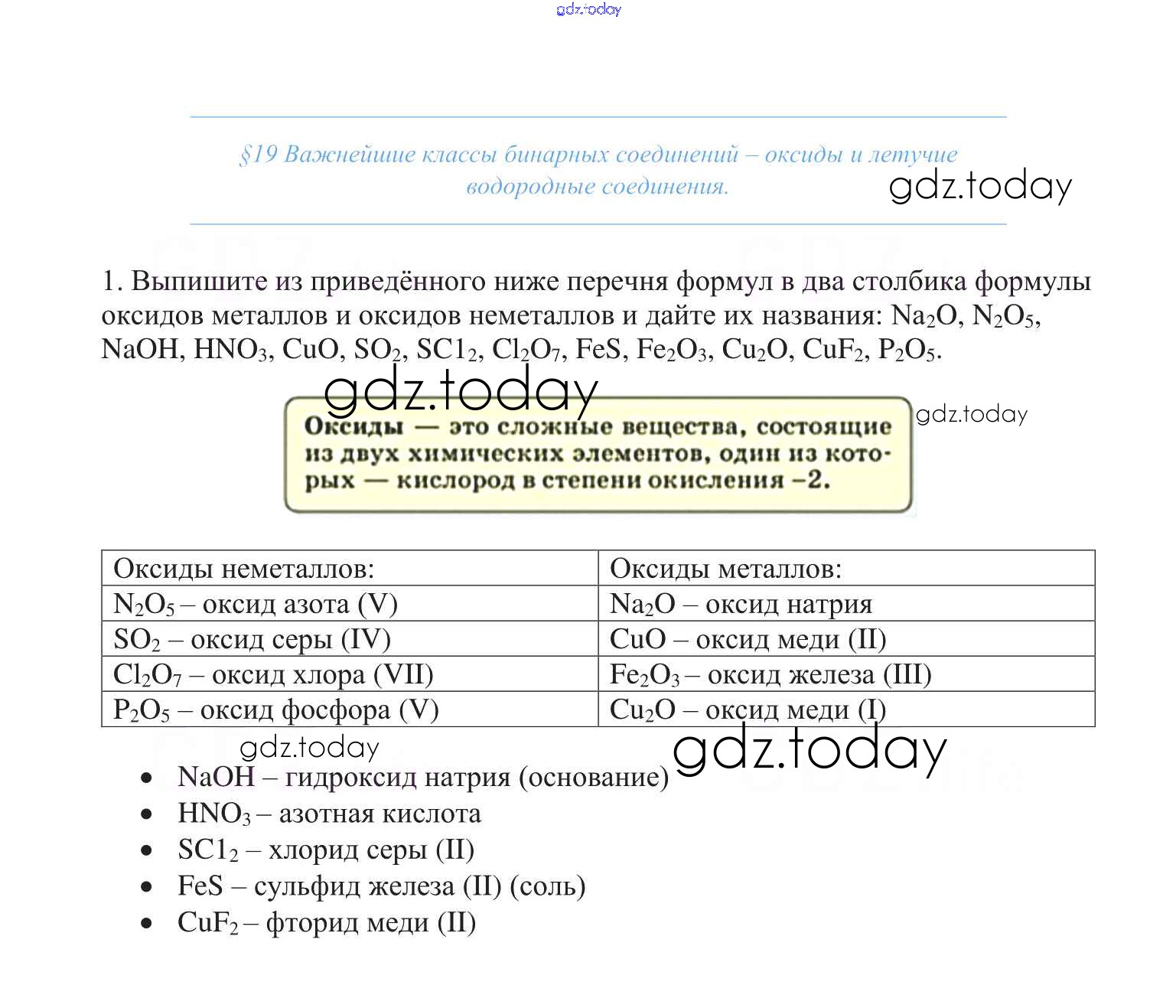 На страницах сайта gdz.today вы найдете учебный и вспомогательный материал, направленный на улучшения знаний школьной программы. ГДЗ - онлайн мир знаний Решение к §19 1 Учебнику по Химии для 8 класса Габриелян Дрофа Вертикаль 2019