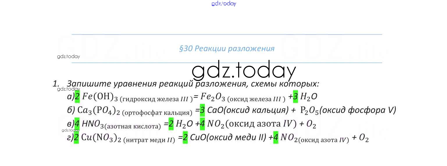 На страницах сайта gdz.today вы найдете учебный и вспомогательный материал, направленный на улучшения знаний школьной программы. ГДЗ - онлайн мир знаний Решение к §30 1 Учебнику по Химии для 8 класса Габриелян Дрофа Вертикаль 2019