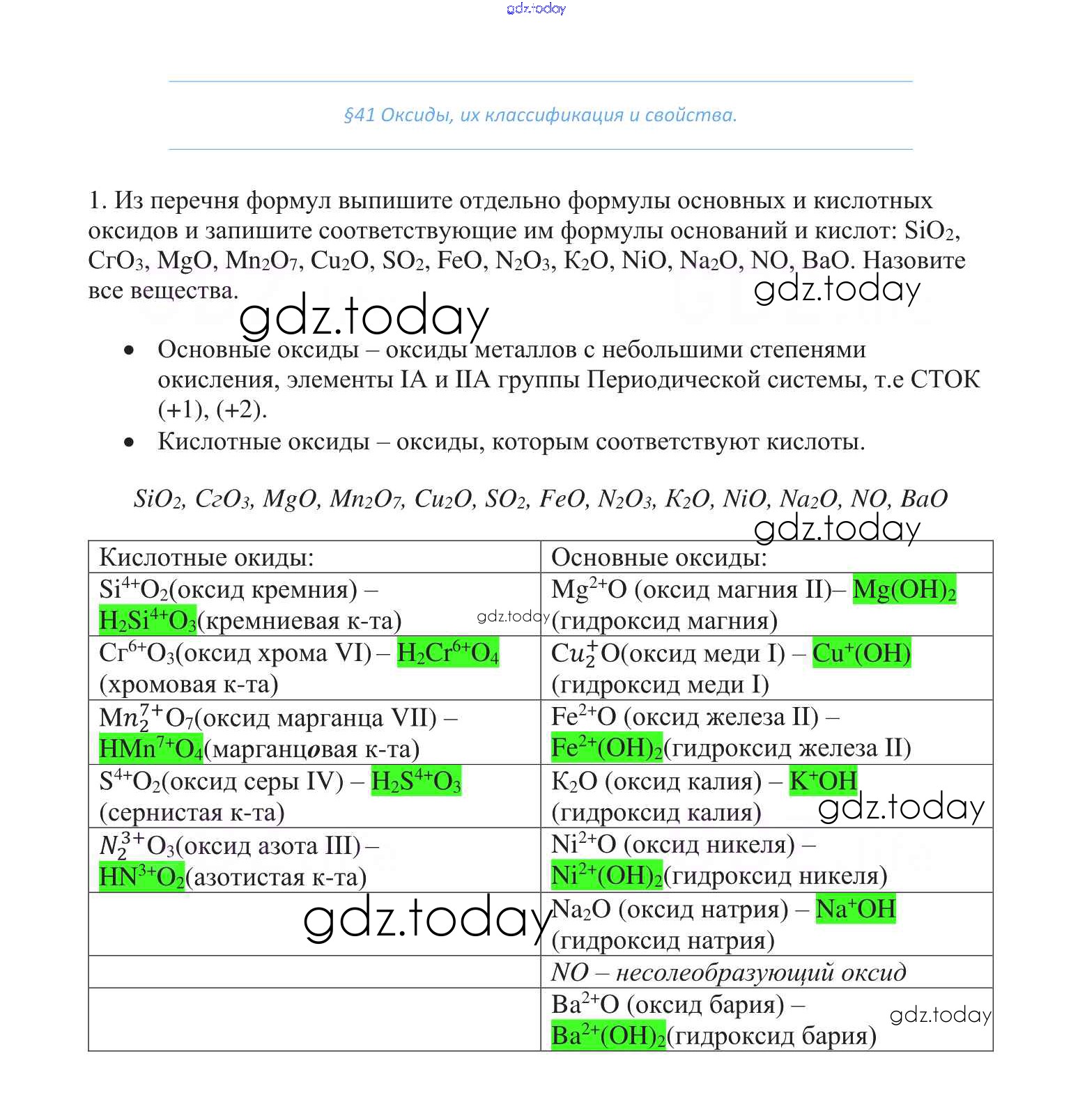 На страницах сайта gdz.today вы найдете учебный и вспомогательный материал, направленный на улучшения знаний школьной программы. ГДЗ - онлайн мир знаний Решение к §41 1 Учебнику по Химии для 8 класса Габриелян Дрофа Вертикаль 2019