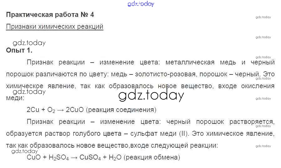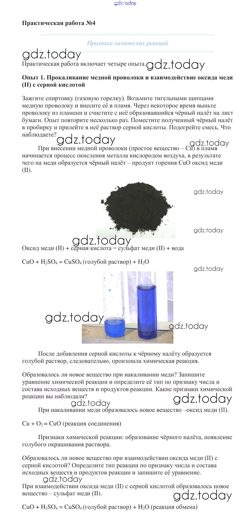 На страницах сайта gdz.today вы найдете учебный и вспомогательный материал, направленный на улучшения знаний школьной программы. ГДЗ - онлайн мир знаний Пр-4 Решение к практическим работам 1 Учебнику по Химии для 8 класса Габриелян Дрофа Вертикаль 2019