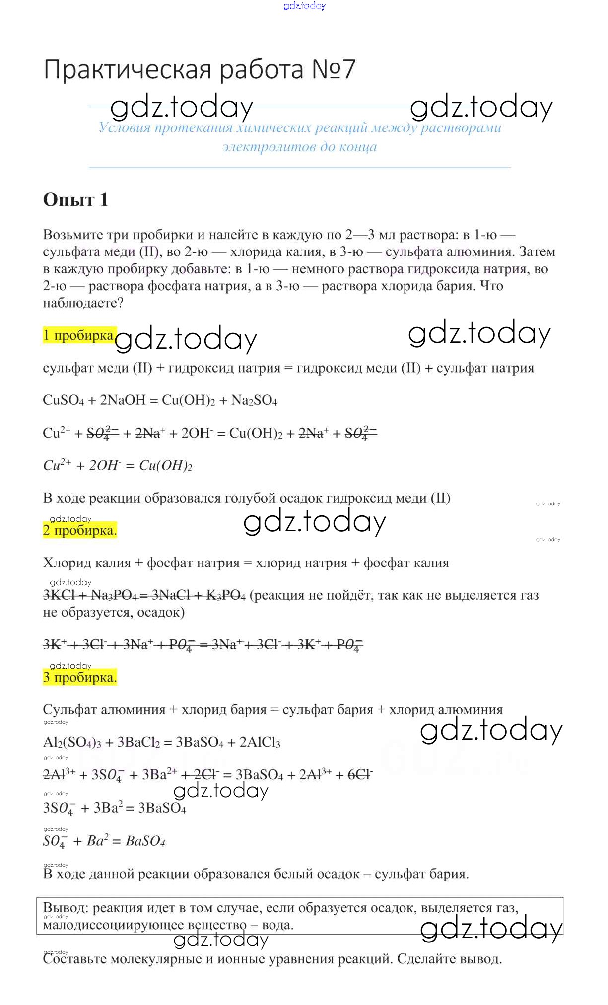 Ответы к Пр-7 Решение к практическим работам 1 Учебнику по Химии для 8 класса Габриелян Дрофа Вертикаль 2019