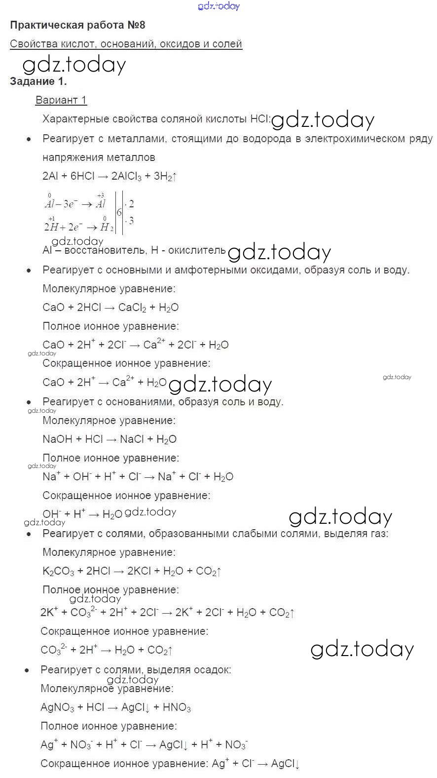 На страницах сайта gdz.today вы найдете учебный и вспомогательный материал, направленный на улучшения знаний школьной программы. ГДЗ - онлайн мир знаний Вариант 1 Пр-8 1 Учебнику по Химии для 8 класса Габриелян Дрофа Вертикаль 2019