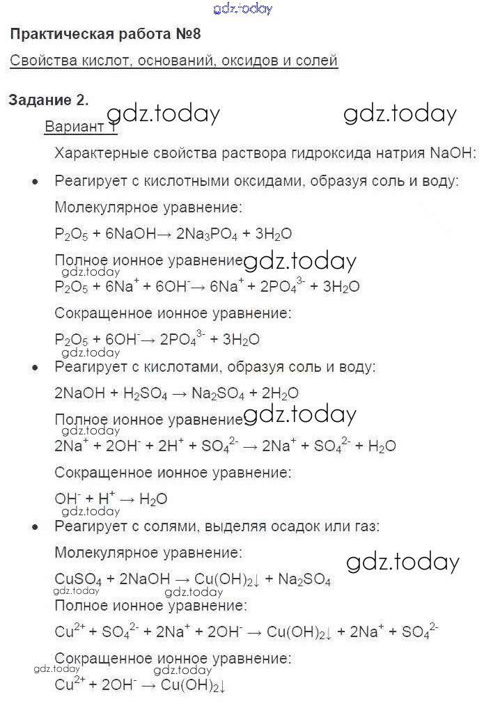 На страницах сайта gdz.today вы найдете учебный и вспомогательный материал, направленный на улучшения знаний школьной программы. ГДЗ - онлайн мир знаний Вариант 1 Пр-8 2 Учебнику по Химии для 8 класса Габриелян Дрофа Вертикаль 2019