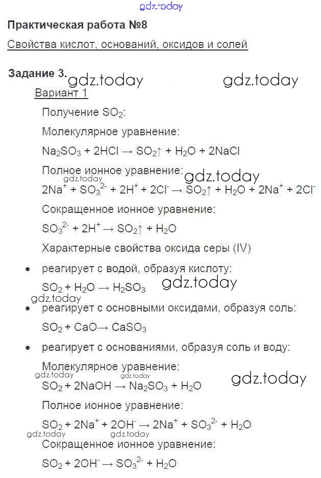 На страницах сайта gdz.today вы найдете учебный и вспомогательный материал, направленный на улучшения знаний школьной программы. ГДЗ - онлайн мир знаний Вариант 1 Пр-8 3 Учебнику по Химии для 8 класса Габриелян Дрофа Вертикаль 2019