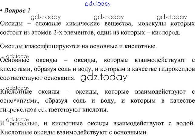 На страницах сайта gdz.today вы найдете учебный и вспомогательный материал, направленный на улучшения знаний школьной программы. ГДЗ - онлайн мир знаний Решение к §23 1 Учебнику по Химии для 8 класса Габриелян, Остроумов Просвещение 2021