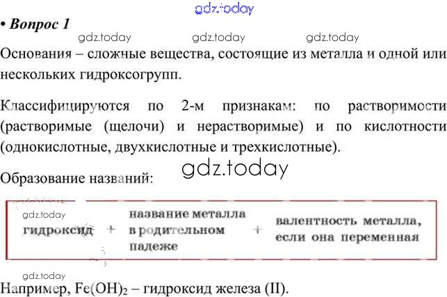 На страницах сайта gdz.today вы найдете учебный и вспомогательный материал, направленный на улучшения знаний школьной программы. ГДЗ - онлайн мир знаний Решение к §24 1 Учебнику по Химии для 8 класса Габриелян, Остроумов Просвещение 2021