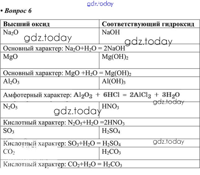 На страницах сайта gdz.today вы найдете учебный и вспомогательный материал, направленный на улучшения знаний школьной программы. ГДЗ - онлайн мир знаний Решение к §28 6 Учебнику по Химии для 8 класса Габриелян, Остроумов Просвещение 2021