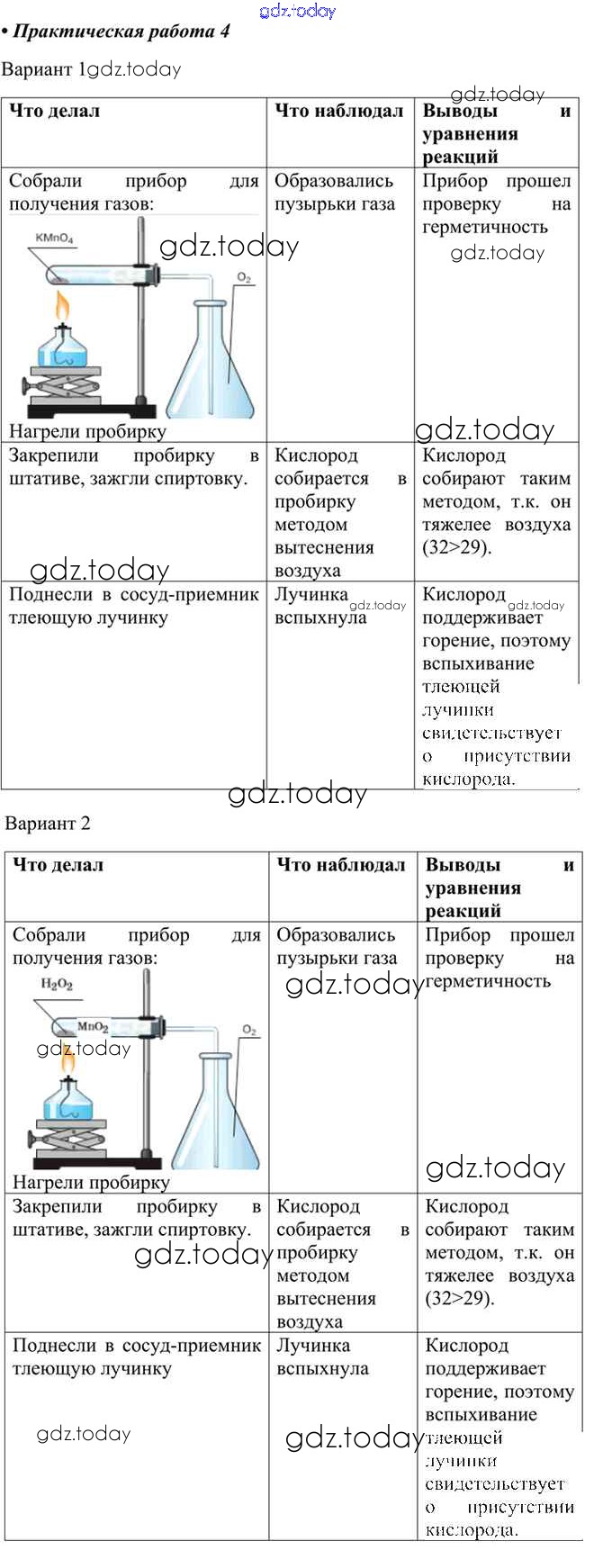 На страницах сайта gdz.today вы найдете учебный и вспомогательный материал, направленный на улучшения знаний школьной программы. ГДЗ - онлайн мир знаний Решение к практическим работам 4 Учебнику по Химии для 8 класса Габриелян, Остроумов Просвещение 2021