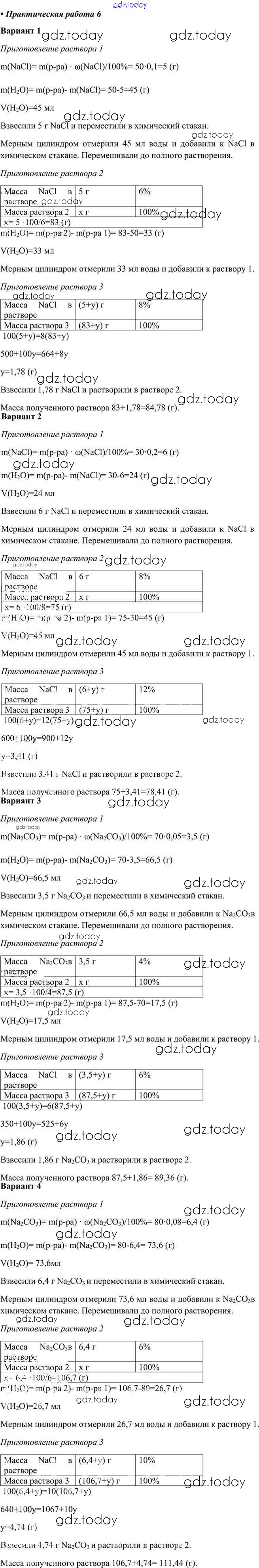 Ответы к Решение к практическим работам 6 Учебнику по Химии для 8 класса Габриелян, Остроумов Просвещение 2021
