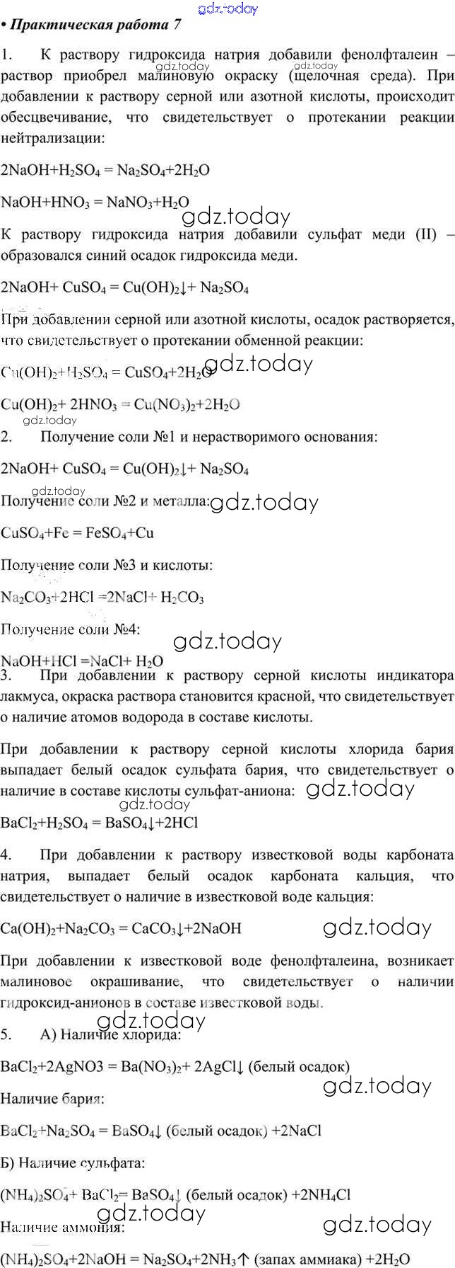 На страницах сайта gdz.today вы найдете учебный и вспомогательный материал, направленный на улучшения знаний школьной программы. ГДЗ - онлайн мир знаний Решение к практическим работам 7 Учебнику по Химии для 8 класса Габриелян, Остроумов Просвещение 2021