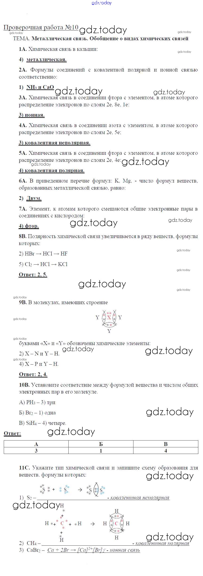 На страницах сайта gdz.today вы найдете учебный и вспомогательный материал, направленный на улучшения знаний школьной программы. ГДЗ - онлайн мир знаний Решение к проверочным работам 10 Тетради для оценки качества знаний по Химии для 8 класса Габриелян, Купцова Дрофа Вертикаль 2013