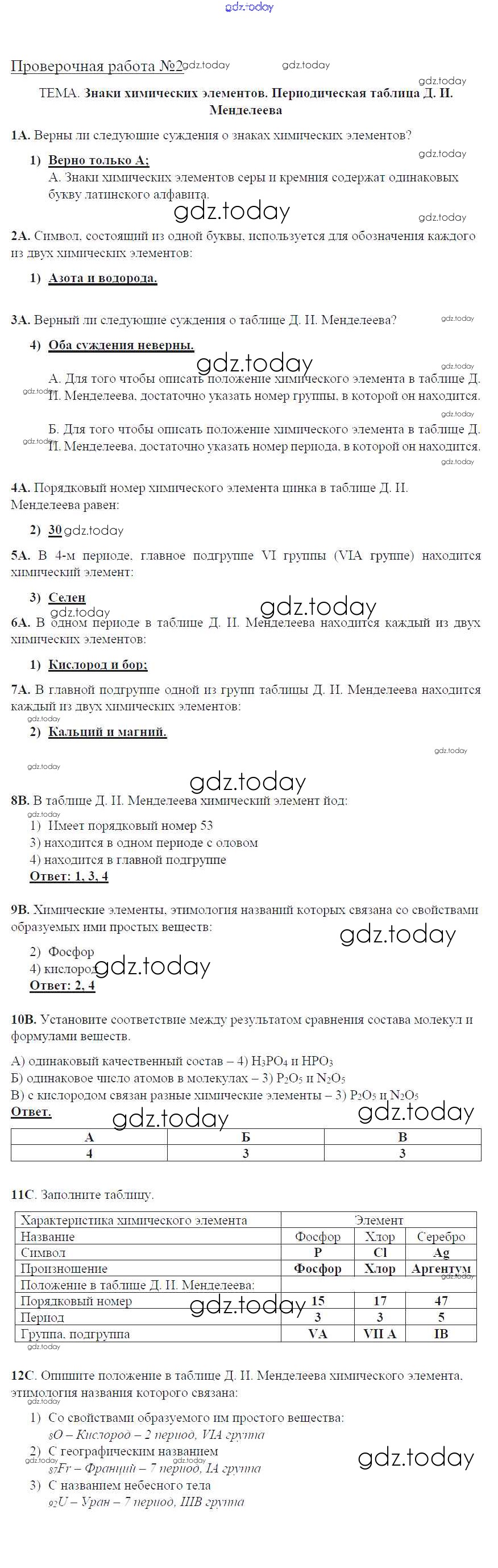 На страницах сайта gdz.today вы найдете учебный и вспомогательный материал, направленный на улучшения знаний школьной программы. ГДЗ - онлайн мир знаний Решение к проверочным работам 2 Тетради для оценки качества знаний по Химии для 8 класса Габриелян, Купцова Дрофа Вертикаль 2013