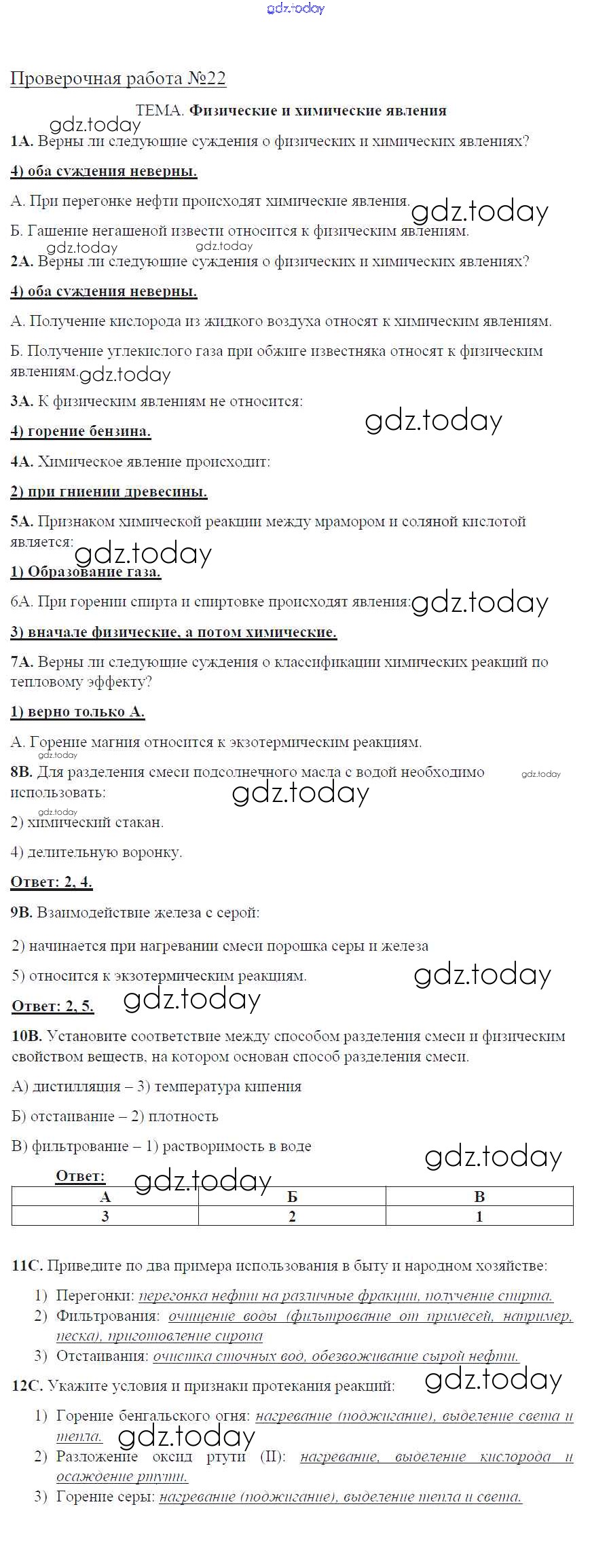 На страницах сайта gdz.today вы найдете учебный и вспомогательный материал, направленный на улучшения знаний школьной программы. ГДЗ - онлайн мир знаний Решение к проверочным работам 22 Тетради для оценки качества знаний по Химии для 8 класса Габриелян, Купцова Дрофа Вертикаль 2013