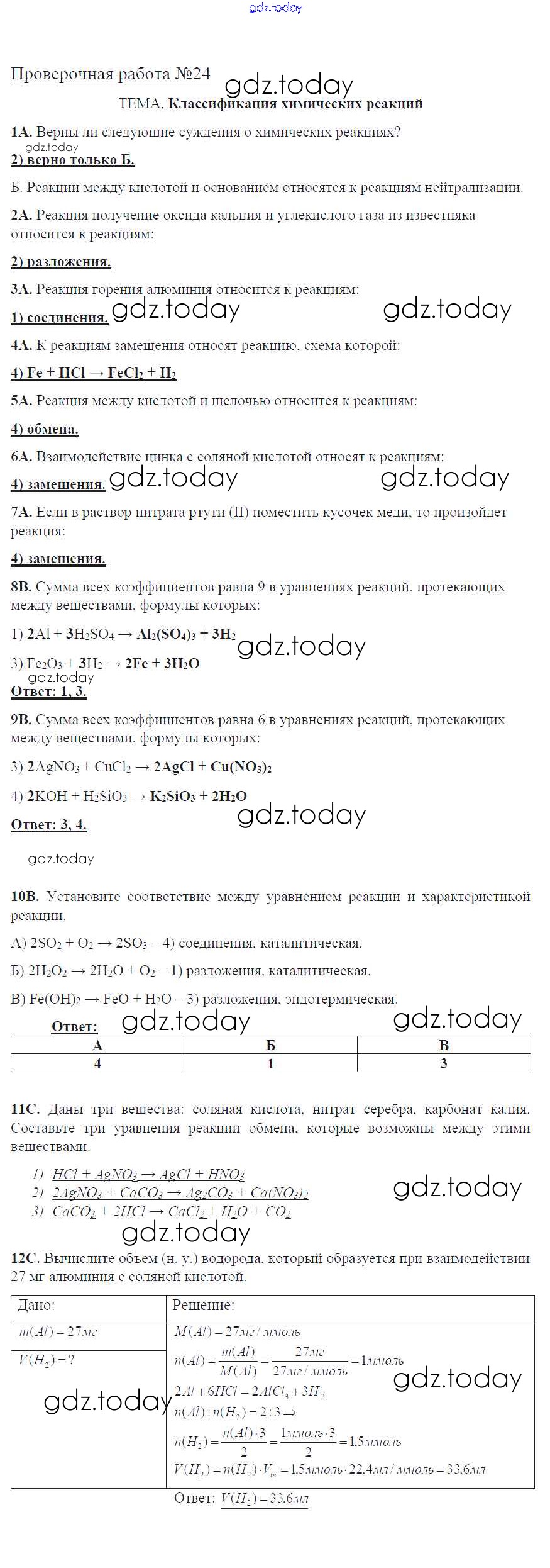 На страницах сайта gdz.today вы найдете учебный и вспомогательный материал, направленный на улучшения знаний школьной программы. ГДЗ - онлайн мир знаний Решение к проверочным работам 24 Тетради для оценки качества знаний по Химии для 8 класса Габриелян, Купцова Дрофа Вертикаль 2013