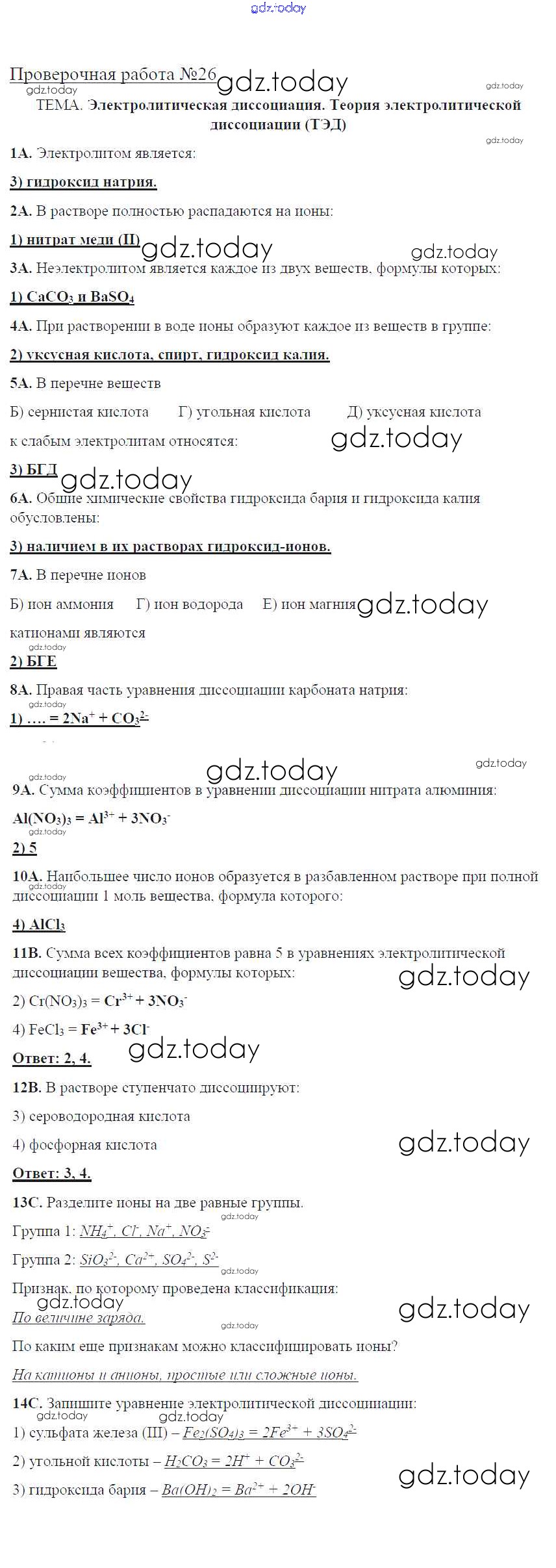 На страницах сайта gdz.today вы найдете учебный и вспомогательный материал, направленный на улучшения знаний школьной программы. ГДЗ - онлайн мир знаний Решение к проверочным работам 26 Тетради для оценки качества знаний по Химии для 8 класса Габриелян, Купцова Дрофа Вертикаль 2013