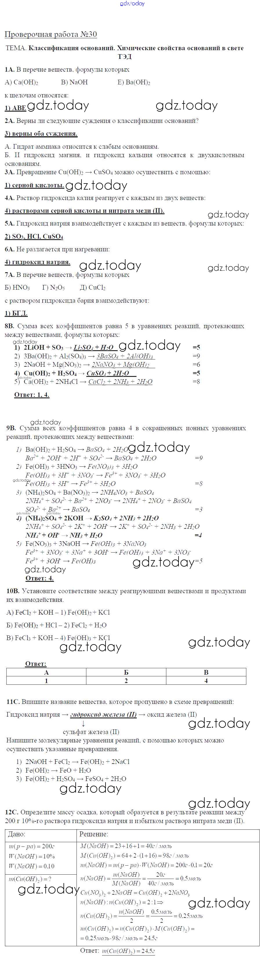 На страницах сайта gdz.today вы найдете учебный и вспомогательный материал, направленный на улучшения знаний школьной программы. ГДЗ - онлайн мир знаний Решение к проверочным работам 30 Тетради для оценки качества знаний по Химии для 8 класса Габриелян, Купцова Дрофа Вертикаль 2013