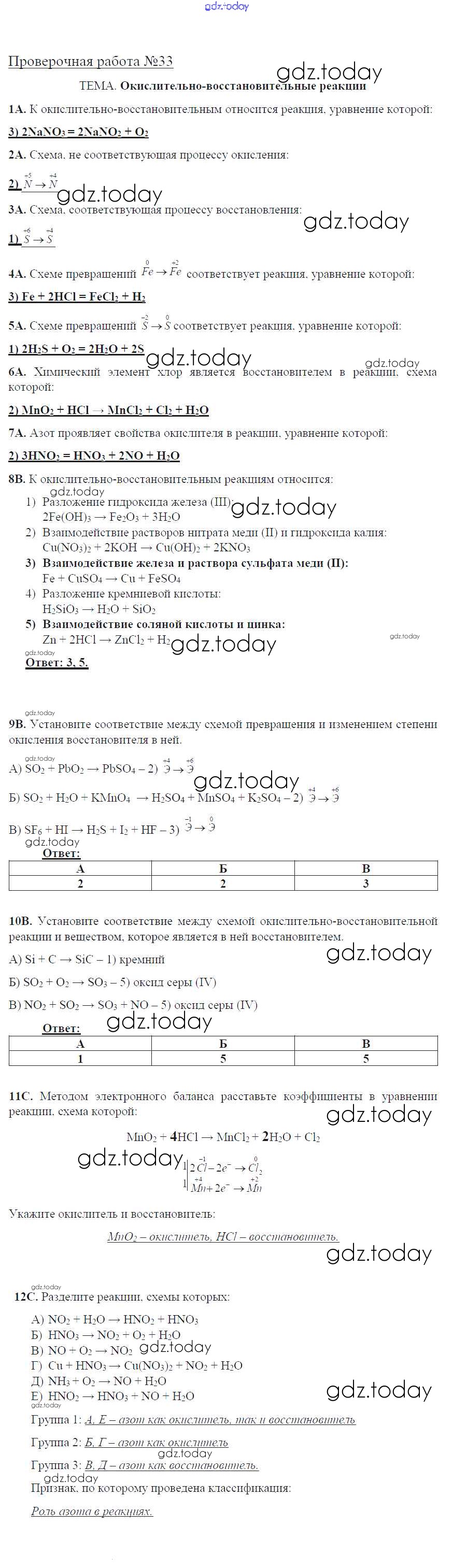 На страницах сайта gdz.today вы найдете учебный и вспомогательный материал, направленный на улучшения знаний школьной программы. ГДЗ - онлайн мир знаний Решение к проверочным работам 33 Тетради для оценки качества знаний по Химии для 8 класса Габриелян, Купцова Дрофа Вертикаль 2013