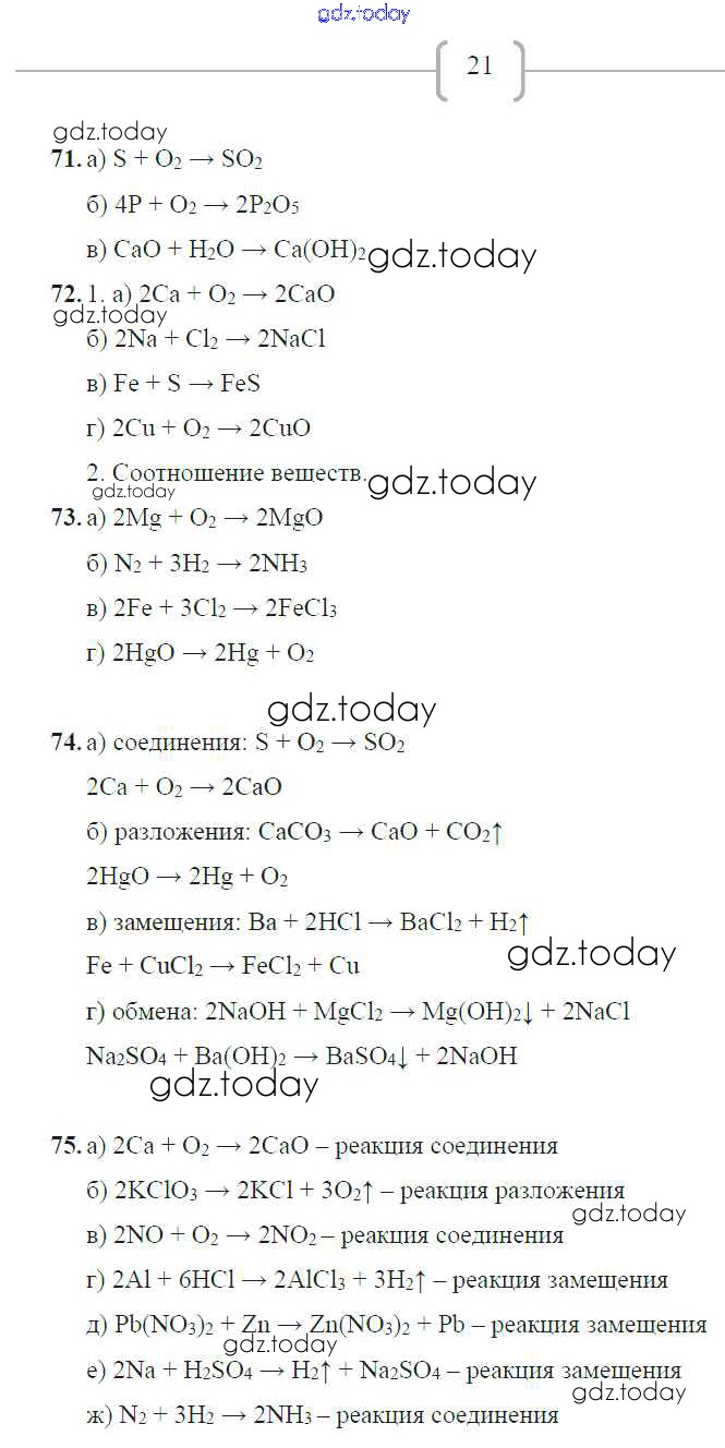 Ответы к Страницы (решение) 21 Рабочей тетради по Химии для 8 класса Габрусева Просвещение УМК 2017