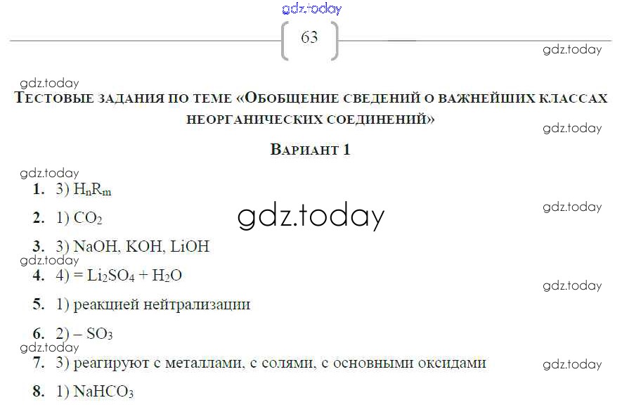На страницах сайта gdz.today вы найдете учебный и вспомогательный материал, направленный на улучшения знаний школьной программы. ГДЗ - онлайн мир знаний Страницы (решение) 63 Рабочей тетради по Химии для 8 класса Габрусева Просвещение УМК 2017