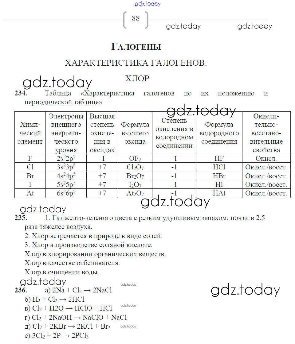 На страницах сайта gdz.today вы найдете учебный и вспомогательный материал, направленный на улучшения знаний школьной программы. ГДЗ - онлайн мир знаний Страницы (решение) 88 Рабочей тетради по Химии для 8 класса Габрусева Просвещение УМК 2017