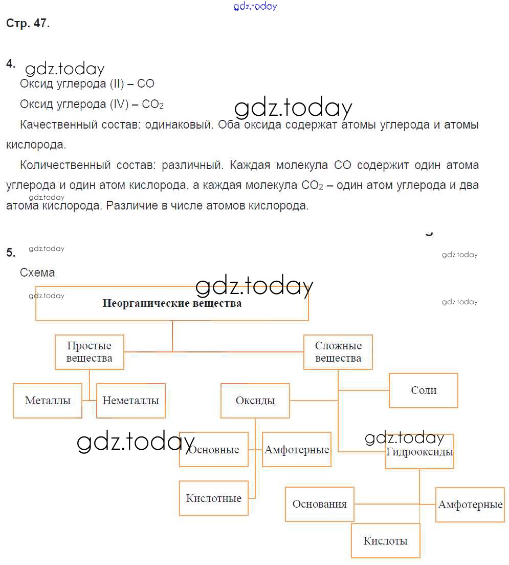 На страницах сайта gdz.today вы найдете учебный и вспомогательный материал, направленный на улучшения знаний школьной программы. ГДЗ - онлайн мир знаний Страницы (решение) 47 Тетради-тренажеру по Химии для 8 класса Гара Просвещение Сферы 2017