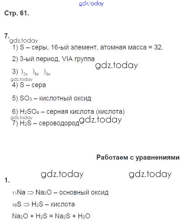 На страницах сайта gdz.today вы найдете учебный и вспомогательный материал, направленный на улучшения знаний школьной программы. ГДЗ - онлайн мир знаний Страницы (решение) 61 Тетради-тренажеру по Химии для 8 класса Гара Просвещение Сферы 2017