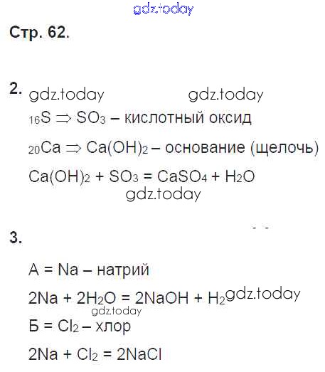 Ответы к Страницы (решение) 62 Тетради-тренажеру по Химии для 8 класса Гара Просвещение Сферы 2017