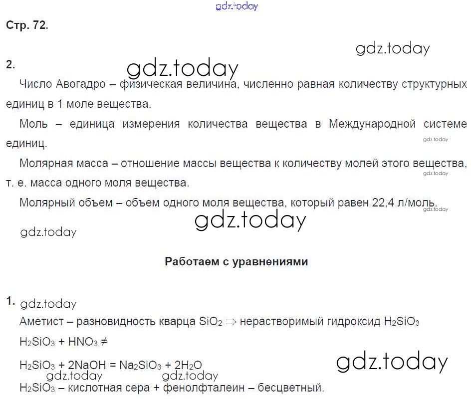 На страницах сайта gdz.today вы найдете учебный и вспомогательный материал, направленный на улучшения знаний школьной программы. ГДЗ - онлайн мир знаний Страницы (решение) 72 Тетради-тренажеру по Химии для 8 класса Гара Просвещение Сферы 2017