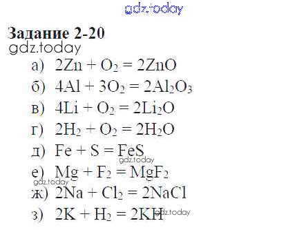 На страницах сайта gdz.today вы найдете учебный и вспомогательный материал, направленный на улучшения знаний школьной программы. ГДЗ - онлайн мир знаний Решение к главе 2 20 Задачнику по Химии для 8 класса Кузнецова, Левкин Вентана-граф Алгоритм успеха 2015